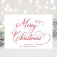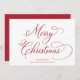 Elegante tarjeta de vacaciones con "Feliz Navidad" exhibida en un elegante guión de caligrafía roja. Añada su saludo personalizado y su apellido con letras rojas modernas y sencillas.