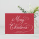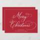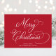 Elegante tarjeta roja de vacaciones con "Feliz Navidad" exhibida en un elegante guión de caligrafía blanca. Añada su saludo personalizado y nombre familiar con letras blancas modernas y sencillas.