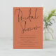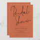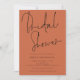 Hermosa Ducha Bridal Terracotta, De Estilo Guión. Disponible digitalmente o impreso. Este moderno diseño en terracota para tu Bridal Shower Invitees ha establecido un elegante guión para Bridal Shower en la parte superior y se puede personalizar fácilmente con tus detalles debajo. También puede cambiar el texto y los colores de fondo en ambos lados si lo desea a través de la opción Personalizar adicional.