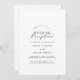 Esta elegante invitación a la boda de escritura es perfecta para un simple fiesta de postventa. El diseño minimalista en blanco y negro presenta una elegante tipografía romántica con un estilo moderno de cristal. Personalizable de cualquier color. Mantenga el diseño minimalista y elegante, como está, o lo personalice añadiendo sus propios gráficos y obras de arte. Las tarjetas RSVP se venden por separado, o puedes agregar información RSVP a la parte posterior de la tarjeta.