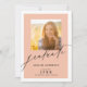 Esta elegante invitación a la fiesta de graduación ofrece dos marcos fotográficos, uno en la parte delantera y otro en la parte trasera. Este diseño de naranja claro se acentúa con un texto elegante de escritura a mano y un borde blanco grueso. Personaliza el reverso con los detalles de la invitación de tu fiesta.