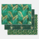 Elegante diseño de patrones y puntos de polka de hojas tropicales verdes y doradas