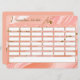 Este horario semanal personalizado/horario escolar incluye una plantilla dividida en 6 filas y 6 columnas (primero es TIME, seguido de días de la semana MON a FRI), y una forma rectangular grande para notas adicionales a continuación. Un elegante fondo de mármol en tonos coral y rosa con acentos dorados lo convierte en el lugar perfecto para estudiantes de secundaria y universitarios.