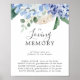 Esta elegante hortensia en señal de recuerdo en memoria es perfecta para una boda de primavera o verano. El diseño floral clásico presenta suaves hortensias de acuarela en azul polvoriento acentuadas con flores de color rosa claro neutro y hojas verdes.