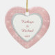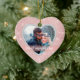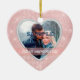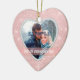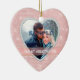Este elegante adorno cuenta con una fotografía especial dentro de un marco falso en forma de corazón de diamante contra una joya de bonito como fondo rosa más claro con pequeñas estrellas. Tu texto está en blanco sobre un banner rosa claro enmarcado en oro. La parte posterior del adorno tiene un campo blanco en forma de corazón con más campos de texto para su personalizar. ¡Un hermoso recuerdo para ese importante Primer El día de San Valentín juntos!