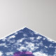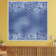 Una elegante pieza de fondo azul con un efecto de pintura acrílico, decorada con diminutas partículas blancas dispersas y flores púrpura.