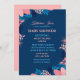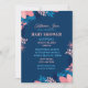 Elegante Invitación Baby Shower De La Marina Rosa Floral. Esta elegante invitación está rodeada de flores rosa bonito con acentos azules. Agregue los detalles de su fiesta para ver cómo se verá su invitación antes de la compra. Nuestra plantilla le facilita cambiar la redacción de su ducha para bebés.