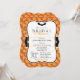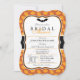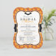 Elegante tema de Halloween invitación a la ducha nupcial nupcial con un patrón de calabaza naranja. Presenta una cabecera de murciélago negro con telaraña y patrón de calabaza. Gran invitación para las duchas de novias de octubre.