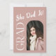 Anuncie el logro de su graduación con esta moderna invitación a graduarse con un elegante fondo polvoriento rosa y una tipografía audaz. El diseño de la tarjeta fotográfica personalizado incluye la frase de celebración "¡Lo hizo!", lo que la hace perfecta para los estudiantes de secundaria o universitarios. Personalice con el nombre de su graduado, el año de clase y el mensaje especial para crear un conservador único. ✨ ¡Hazlo tú mismo! Personalizar el texto, las fuentes y los colores para que coincidan con el estilo de tu graduado, los colores de ropa y los colores de la escuela. Ideal para los anuncios de graduación, invitaciones a fiestas y celebraciones para adultos mayores. 🎓 Revisa nuestra colección para coordinar tarjetas de agradecimiento, decoración fiesta y más para completar tu celebración! 💌 Comunicación: 📩 ¿Tienen preguntas sobre el diseño? ¡Mándame un mensaje! 📦 ¿Preguntas de pedido o de cuenta? ¡Mensaje Zazzle!