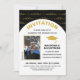 Elegante invitación de fotografía de graduación en negro y oro, diseñada para que celebres el éxito de tu graduación. Hay un pequeño gráfico superior de graduación en el mismo color de escritura de coordinación en el fondo. Por el lado de la FOTO del PERSONALIZABLE hay una sutil referencia de la Biblia Cristiana para los Efesios 3:20 - 'Dios es capaz de hacer de manera excesivamente, abundante'. El patrón de mosaico de fondo dice INVITACIÓN en la tipografía de guiones. El resto del texto es PERSONALIZABLE, por lo que puede personalizar fácilmente esta invitación a la graduación para sus necesidades específicas. Lo contrario se ha dejado claro para usted. Podrá elegir entre una amplia selección de diseños de Graduado en tarjetas, invitaciones, ropa, decoración y regalos, diseñados por los diseños bereanos. Estas invitaciones para Grad y tarjetas de agradecimiento han sido diseñadas para que coincidan con los diferentes colores académicos.