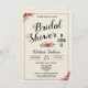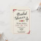 Imágenes florales de Bonito decoran las esquinas de la caja de borde de color rosa de la invitación. Utilizamos una variedad de opciones de fuentes para añadir un aspecto único a las invitaciones de su pareja a la ducha de novias. Ver más en Heart Song Notes aquí en Zazzle.