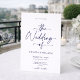 Elegante invitación a la boda blanca y azul