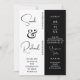 La última invitación a esta boda en blanco y negro tiene un magnífico guión en negrita para sus nombres y una hermosa disposición que refleja una elegancia moderna y moderna. Actualice fácilmente el texto para satisfacer sus necesidades específicas. Se ve bien en papel o a través del formato digital.