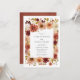 Fije el tono de su rústica boda en otoño con esta elegante invitación burdeos y terracota con cálidos florales naranjas. Perfecto para bodas de otoño con un estilo acogedor o refinado. Examine la colección completa para buscar tarjetas RSVP, signos y más.