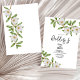 Elevar la papelería boda con este exquisito y elegante eucalipto de vegetación deja una invitación rústica a la boda. Esta invitación, bellamente diseñada con intrincadas hojas de eucalipto y exuberante vegetación, marca la pauta para una celebración de boda romántica y elegante. Perfecto para bodas al aire libre o de inspiración natural, esta invitación presenta una impresionante combinación de elementos naturales y diseño clásico. Las hojas de eucalipto y la vegetación se ilustran con delicadeza para crear un ambiente hermoso y caprichoso. Cada invitación está cuidadosamente diseñada para proporcionar un toque único y personalizado a su día especial. Con su diseño elegante y su belleza natural, esta invitación impresionará a sus huéspedes y dejará una impresión duradera.