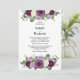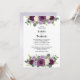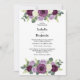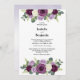 Fondo mínimo de invitación a la boda blanca con rosas profundos en violeta, lavanda y marfil en los bordes superior e inferior, plantilla perfecta para tarjetas bodas impresas a petición.