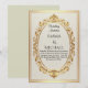 Una invitación de bodas de lujo con un marco floral dorado ornamentado, fondo de marfil, y elegante silueta de novia y novio en oro resplandeciente. Perfecto para parejas que buscan una elegancia atemporal y un estilo de papelería boda de primera calidad.