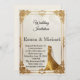 Una invitación de bodas de lujo con un marco floral dorado ornamentado, fondo de marfil, y elegante silueta de novia y novio en oro resplandeciente. Perfecto para parejas que buscan una elegancia atemporal y un estilo de papelería boda de primera calidad.