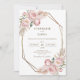 Celebra tu historia de amor con esta romántica y elegante invitación a una boda floral con delicadas flores de color rosa de agua, suaves acentos de pasto de pampas y un marco dorado. Perfecto para bodas modernos, bodas de moda boho, bodas rústicos o elegantes bodas rosas. Este diseño añade un toque de belleza intemporal a su día especial.