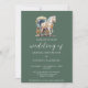 Elegante Invitación a la Boda de Camión de Caballo. Únete a nosotros para una elegante celebración mientras intercambiamos votos rodeados de los ricos matices de un boda romántico. Nuestro boda presentará una hermosa mezcla de un carro tirado por caballos, jalado por un hermoso caballo blanco de colores azules románticos, todo acentuado por el encanto atemporal de la caligrafía del guión. En este día especial, disfrute de la calidez y la elegancia de la temporada.