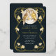 Elegante y moderno diseño Art Nouveau boda con dos búhos de granero contra una luna llena rodeada de ramas y flores de lirio blanco. Artículos coincidentes en nuestra tienda para un tema fiesta completo.