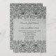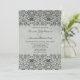 Esta elegante invitación de boda vintage tiene un diseño de damasco de remolinos negros en el borde superior e inferior con un fondo gris plateado descolorido. En el centro, podrá personalizar fácilmente los detalles de la ceremonia boda. Esta es una hermosa invitación de invitación a bodas que sería genial para todas las temporadas, especialmente para otoño/otoño e invierno.