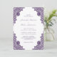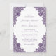 Estas elegantes invitaciones nupciales con encaje floral violeta son perfectas para invitar a sus invitados a su fiesta de bodas rústica morada.