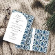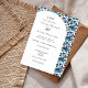 Invite a sus seres queridos a celebrar su día especial con esta elegante invitación de bodas con una sofisticada frontera floral azul. El diseño limpio y clásico combina tipografías séricas intemporales y grávidas, resaltando sus nombres y detalles de eventos para un estilo refinado y romántico. Perfecto para bodas tradicionales o modernos, esta invitación es un personalizable total con la información de su boda para crear una invitación memorable