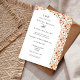 Invite a sus huéspedes a celebrar su día especial con esta elegante invitación a la boda, que incluye un vibrante borde floral otoñal en cálidos tonos naranja, rubor y amarillo. El diseño limpio y clásico combina tipografías séricas intemporales y grávidas, creando un estilo sofisticado y romántico. Perfecto para bodas en otoño o parejas que buscan un diseño floral refinado, esta invitación es completamente personalizable con sus nombres, fecha de boda, lugar y detalles del evento para un toque verdaderamente personal.