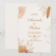 Invite a sus seres queridos a su día especial con esta elegante invitación de bodas boho. Con hojas de acuarela pintadas a mano en suaves tonos tierra y una fuente de escritura refinada, este diseño combina belleza natural con un sofisticado minimalismo. 🌿 Aspectos destacados: - ilustraciones de acuarela botánica en tonos cálidos - Escritura romántica y emparejamiento moderno - Perfecto para bodas rústicos, caídos o al aire libre ✨ Personalizable con sus nombres, fecha, lugar de celebración y mensaje personal 🕊️ Disponible en tarjetas RSVP, notas de agradecimiento y programas de bodas a juego