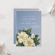 Elegante invitación botánica a la boda, con los detalles de su boda en el frente y el centro, con ramos de flores pintadas de gardenia blanca, brotes de aliento de bebé, hojas de helecho verde salado y hojas verdes vibrantes en las esquinas. Esta invitación blanca de boda floral es perfecta para bodas en el jardín y bodas de primavera o verano. Si necesitas ayuda o artículos a juego, por favor contácteme.