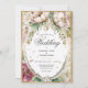Lujosa cortina vintage floral dorada con flores rosadas y rubias. Si quieres romance, esta invitación es perfecta. Tan moda y sofisticada. Una invitación tan elegante a la boda. Las trampas de purpurina de oro falsas y un marco dorado completan esta exquisita invitación a la boda. Me ha gustado crear este diseño para ti. Zazzle garantiza un 100% de atención al cliente y satisfacción.
