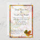 Las encantadoras invitaciones de boda de otoño, con un descolorido fondo de otoño y una sola hoja de color, en la parte inferior. Muy buena invitación para una novia. El texto en negro es totalmente personalizable para satisfacer las necesidades de su boda. Hay disponibles tarjetas RSVP y tarjetas de gabinete. (ver enlaces abajo)