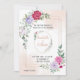 Elegante Invitación a la Boda Dorada Floral Esta Vieja Invitación a la Boda Rosa de Rubor floral presenta botánicos rosas románticos, nombres de guiones y tipo clásico. Las flores blandas hacen que esto sea una invitación femenina, pero no demasiado. Perfecto para un boda de inspiración vintage, una boda al aire libre o un boda clásico y atemporal. Haga clic en el botón Editar para personalizar de este diseño.