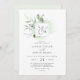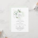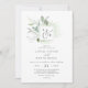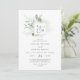 Esta elegante invitación a una boda en monograma es perfecta para un simple boda. El moderno y elegante diseño presenta un diseño botánico natural de eucaliptos, hojas y plantas con un sutil acento acuático verde de menta. Personalice la tarjeta con su monograma de iniciales.