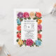 Este floral diseño de invitación a la boda irradia elegancia y romance, lo que lo convierte en la elección perfecta para un día especial de pareja. La invitación cuenta con un lujoso arreglo de rosas vibrantes que atraviesan en cascada la parte superior y lateral de la disposición, dejando un espacio limpio y abierto en la parte inferior para el texto. La paleta de colores combina armoniosamente pastas suaves y tonos vivos y audaces, combinando blanco cremoso, rosa rubor, naranjas de fuego, rojos románticos y un rosa azul llamativo que añade un toque único al diseño. En el centro de la obra de arte hay un gran rosa florido con delicadas capas de pétalos de crema y melocotón. Esta pieza central atrae la atención inmediata y marca el tono de un diseño atemporal y moderno. A su alrededor hay otros rosas en diversas etapas de la floración, que simbolizan la belleza del amor a medida que crece y florece. Los pequeños rosebudos esparcidos a lo largo de todo el arreglo evocan una sensación de frescura y nuevos comienzos, capturando perfectamente el sentimiento de una celebración boda. La vegetación es igualmente impresionante, con hojas en tonos verdes y sutiles y violeta que realzan la elegancia natural de la decoración floral. Cada hoja se detalla con venas visibles y gradientes blandos, creando una textura realista que complementa la apariencia suave y aterciopelada de los rosas. El follaje añade profundidad y movimiento, enmarcando las flores de una manera que se siente exuberante y orgánica al tiempo que mantiene una composición sofisticada. El fondo presenta un degradado sutil que pasa del beige cálido al blanco puro. Este fondo subestimado ofrece un suave contraste con las flores vibrantes, asegurando que los rosas sigan siendo el punto central. Las sutiles salpicaduras de acuarela en tonos mudos añaden un toque artístico, que sugiere creatividad e individualidad —cualidades que a menudo se asocian con el comienzo de un viaje de vida compartido. La parte inferior de la invitación se deja deliberadamente abierta, con un área gris suave que proporciona un espacio elegante para el texto. Este diseño reflexivo permite que los nombres de la pareja, la fecha de boda, el lugar y otros detalles importantes se destaquen sin competir con el intrincado arreglo floral de arriba. El texto puede ser estilizado en caligrafía elegante o en fuentes serif modernas, mejorando la estética romántica y refinada de la invitación. La composición general de esta invitación a la boda logra un equilibrio perfecto entre la belleza tradicional y el diseño contemporáneo. El simbolismo atemporal de los rosas transmite amor, pasión y compromiso, mientras que la inclusión audaz de un rosa azul introduce una sensación de misterio e individualidad. Esta combinación única hace que el diseño sea versátil, adecuado para bodas de corbata negra formales, ceremonias de jardín o incluso elementos íntimos. La calidad artística de los rosas, con sus gradientes suaves y su sombra salvaje, sugiere lujo y sofisticación. Los tonos vibrantes y la disposición fluida evocan una sensación de alegría y celebración, lo que crea el tono perfecto para un boda. Este diseño floral no es sólo visualmente impresionante sino también profundamente simbólico, representando el amor floreciente y la unidad que la pareja celebrará en su día especial. Es una invitación que promete elegancia, belleza y una experiencia inolvidable para los huéspedes que la reciben.