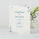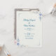 Esta elegante invitación a la boda floral azul presenta delicados florales y un diseño suave y clásico. Ideal para parejas que buscan una invitación eterna y romántica. Ideal para una celebración de primavera o verano, esta invitación matrimonial es personalizable con los detalles de su evento. Crea una primera impresión impresionante con esta hermosa invitación de boda impresa que marcará el tono de tu día especial.