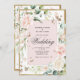 Un fondo rosa suave recortado en oro falso. Flores rosas y eucaliptos. Si quieres romance, esta invitación es perfecta. Tan moda y sofisticada. Las hermosas flores acuarelas de esta invitación a la boda son magníficas. Muy delicado. Me ha gustado crear este diseño para ti. Zazzle garantiza un 100% de atención al cliente y satisfacción.