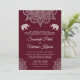 Sorprenda a sus huéspedes con esta tradicional invitación a la boda, que incluye un elegante arte de henna y elefantes hermosamente decorados con un fondo de burdeos. Simplemente agregue los detalles de su evento en esta plantilla fácil de usar para convertirla en una invitación única. Esta carta es totalmente personalizable. Todos los textos son editables y el color de fondo puede cambiarse fácilmente a lo que más le convenga.