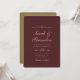 Invitación de boda intemporal con un diseño de escritura minimalista con tipografía suave en un fondo rico. Perfecto para las parejas que buscan un ambiente romántico y sofisticado para su día especial. Ideal para bodas clásicas, modernas o elegantes.