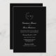 Elegante invitación a la boda monograma en blanco y negro. Con una corona floral con las iniciales de la pareja para un aspecto sobrio y elegante. Personalizar con su redacción.