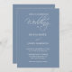 Moderno Periwinkle Minimalista Dusty azul y caligrafía blanca Letra de letra formal y elegante Invitación de matrimonio. Todos los elementos, incluidos los textos y las imágenes, el fondo y los colores son personalizables. Si desea mover el diseño a un producto o tamaño diferente, asegúrese de realizar los ajustes necesarios para que se ajuste a los nuevos elementos.
