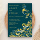 Sorprenda a sus huéspedes con esta elegante invitación nupcial que incluye un hermoso pavo real con tipografía moderna en un oscuro entorno verde azulado. Simplemente agregue los detalles de su evento en esta plantilla fácil de usar para convertirla en una invitación única.