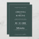 Esta elegante invitación a la boda presenta un fondo verde sabio profundo con tipografía serif intemporal y acentos románticos de escritura. Con un diseño centrado, equilibrado y líneas depuradas, es una combinación perfecta de minimalismo moderno y sofisticación clásica, ideal para bodas formales o nocturnos. Características de diseño de 🌿: tono verde de sabio sólido para una estética refinada Tipo de letra serif All-caps para nombres y fecha Detalle de guión agrega un toque elegante Diseño limpio y minimalista con una excelente legibilidad Campos de texto personalizable completo