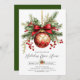 Invitar a los seres queridos a celebrar la temporada con esta elegante invitación a la casa abierta de vacaciones con un ornamento rojo. El diseño presenta un adorno navideño clásico, atado con un profundo arco rojo, rodeado por una colmena de agua, ramas de pino y bayas para un toque festivo eterno. Perfecto para acoger una acogedora reunión de vacaciones, fiesta de barrio o casa abierta familiar, esta tarjeta combina elegancia y calidez. Personalice con sus detalles del evento, RSVP, y nombre de la anfitriona para una lujosa y profesional apariencia que difunde alegría por las vacaciones.