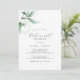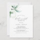 Esta elegante y verde invitación a cenar es perfecta para un sencillo ensayo boda. El moderno y elegante diseño presenta un diseño botánico natural de eucaliptos, hojas y plantas con un sutil acento acuático verde de menta.