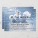 Una elegante y onírica invitación a la ducha de novia con dos cisnes enamorados en un lago nevado iluminado por el sol. Magnífico para una celebración de lago o parque.