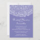 Hermosa y elegante invitación a la ducha matrimonial de encaje antiguo con encaje impreso en encaje blanco sobre un elegante fondo violeta claro. Invierta la invitación para encontrar un color que coincida para un toque especial. Disponible en nuestra tienda en una amplia selección de colores modernos y de moda que su novia amará. Fácil de personalizar con su información fiesta y garantizado para hacer una perfecta primera impresión. Ideal para una ducha nupcial de verano, una ducha nupcial de primavera, una ducha nupcial de otoño o una ducha nupcial de invierno.