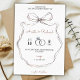 Elegante invitación a la fiesta de compromiso con un diseño de lazo, con nombres, fecha, hora y detalles del lugar en una escritura clásica. Simple y sofisticado.