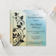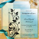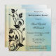 Invitación a la fiesta de retiro de estilo vintage con elegantes movimientos florales en un azul con diseño geométrico veteado amarillo desvanecido.